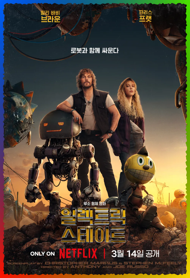 넷플릭스가 선보일 '일렉트릭 스테이트'는 2025년 3월 14일 공개됩니다. SF와 감성적인 로드 무비를 결합한 독창적인 작품으로, 루소 형제가 어떤 마법을 보여줄지 기대됩니다.