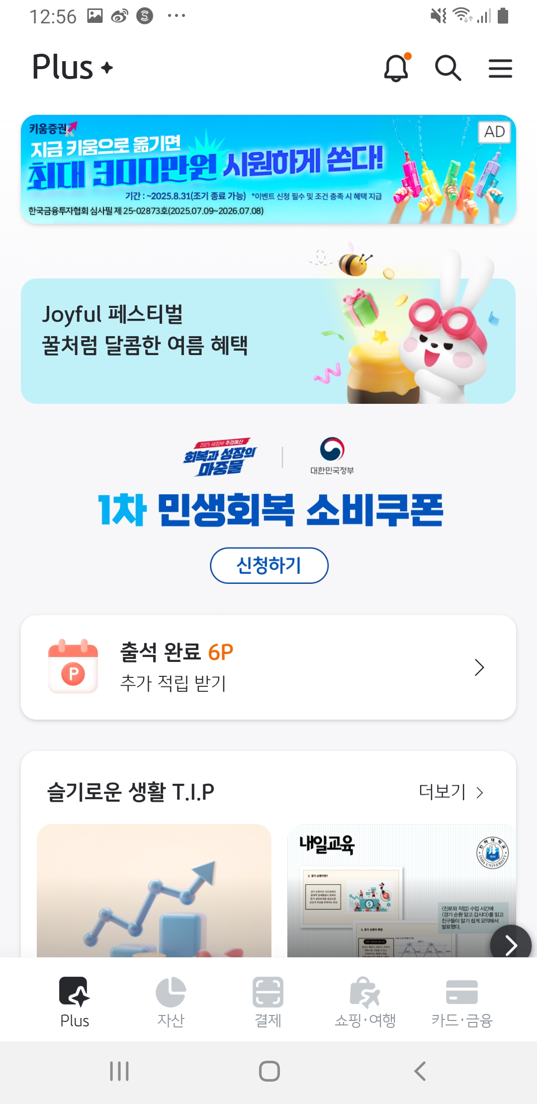 • 앱 홈 화면에서 [1차 민생회복 소비쿠폰 신청하기] 배너 터치