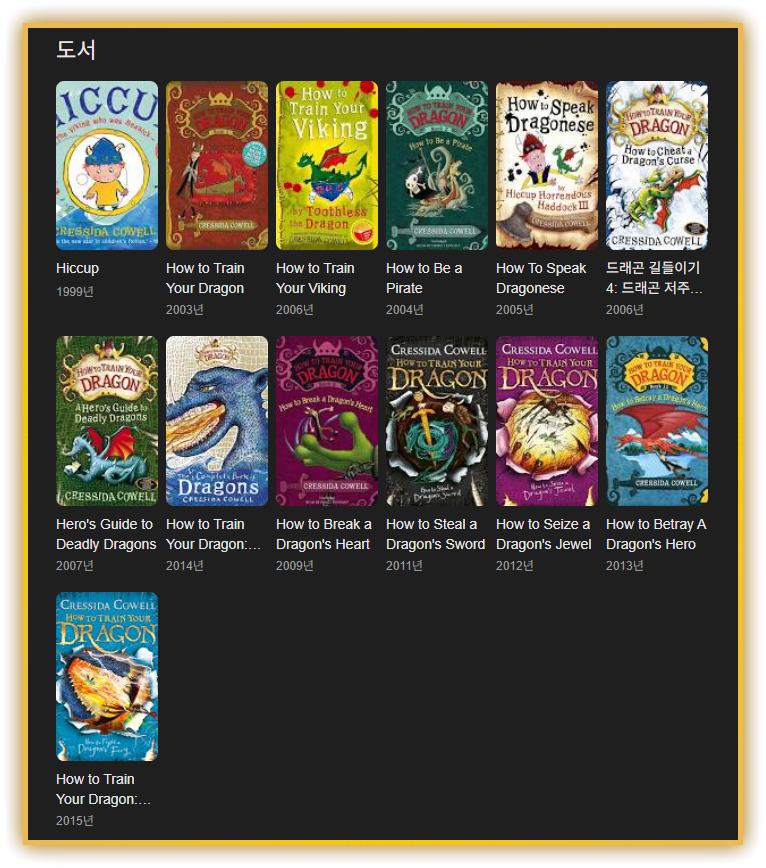 드래곤 길들이기 소설은 영국 작가 크레시다 코웰이 쓴 어린이/청소년 소설 시리즈로, 2003년부터 2015년까지 총 12권의 메인 시리즈와 여러 외전 및 관련 책으로 구성되어 있습니다. 이 소설은 바이킹 소년 히컵 호렌더스 해덕 3세(Hiccup Horrendous Haddock III)와 그의 드래곤 투슬리스(Toothless)의 모험을 중심으로 전개됩니다.