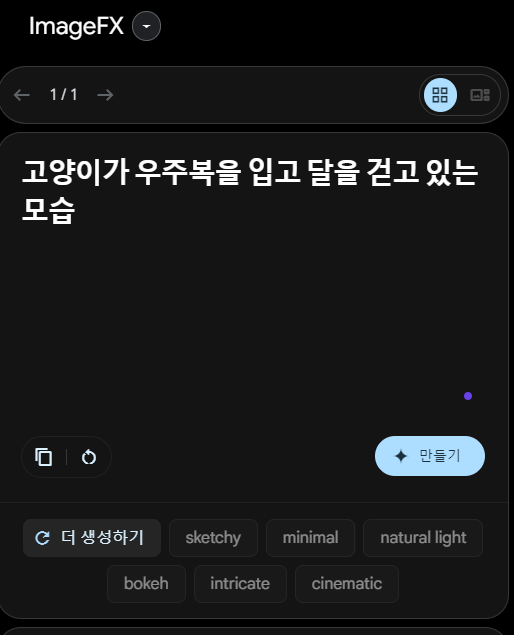 - ImageFX는 입력한 프롬프트를 자동으로 개선해주는 기능을 제공합니다.