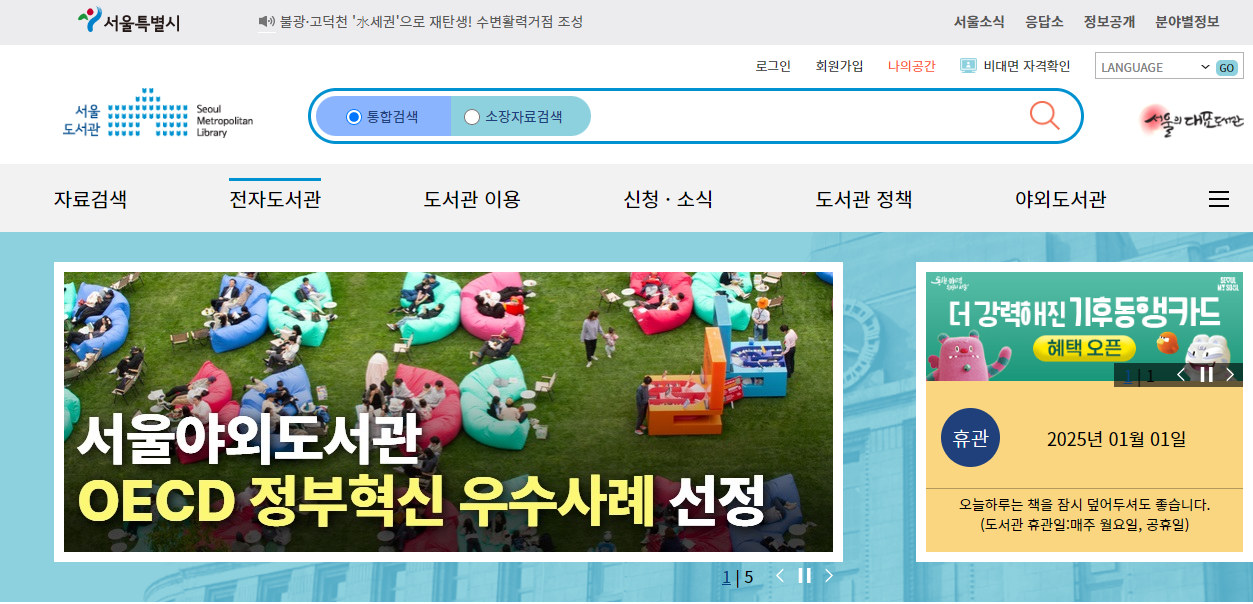 - 회원가입: 서울도서관 홈페이지(https://lib.seoul.go.kr)에서 회원 가입을 진행합니다. 서울시 거주자 및 근무자를 대상으로 하며, 주민등록증 또는 직장 증명 서류를 제출해야 합니다.