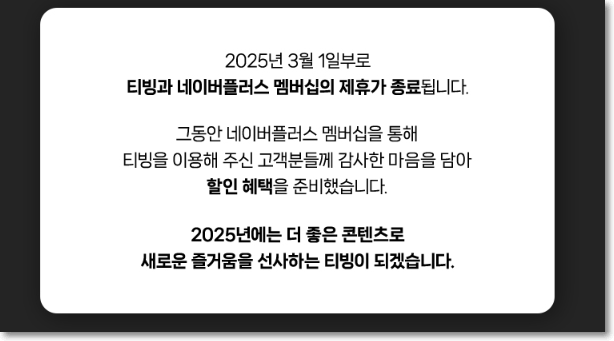 네이버 플러스 멤버십에서 제공하던 티빙 기본 이용권 혜택이 2025년 3월 1일부로 종료된다.