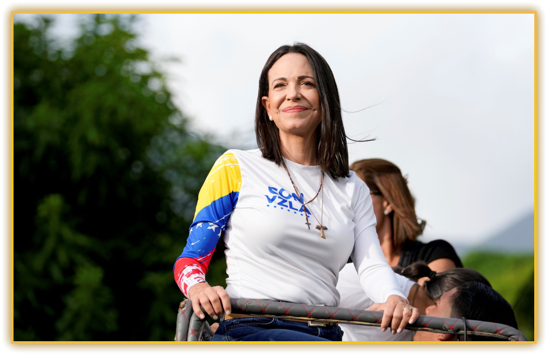 2023년, 그녀는 베네수엘라 대선에 야당 후보로 출마하려 했지만, 니콜라스 마두로(Nicolás Maduro) 정권에 의해 출마가 금지되었어요. 이에 굴하지 않고, 그녀는 동료 정치인 **에드무도 곤살레스(Edmundo González)**를 지지하며 부정선거를 폭로하는 데 앞장섰습니다. 이 과정에서 마두로 정권의 탄압은 극에 달했지만, 그녀는 평화적 항쟁을 통해 국제 사회의 지지를 끌어냈어요.