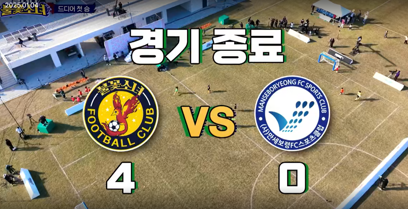 2025년 1월 4일 방송된 만세보령FC와의 경기에서 불꽃소녀들은 마침내 첫 승리를 거두었습니다. 김세아가 전반 4분 만에 터뜨린 선제골은 팀 분위기를 끌어올렸고, 이후 김서율과 김세아가 추가 골을 기록하며 경기를 4대0으로 마무리했습니다.