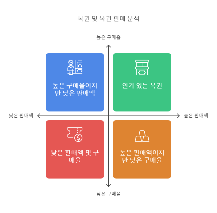 - 로또: 높은 당첨금을 한 번에 받을 수 있는 구조로 꾸준히 압도적인 인기를 유지하고 있으며, 특히 서울과 수도권에서 높은 구매율을 보이고 있습니다.