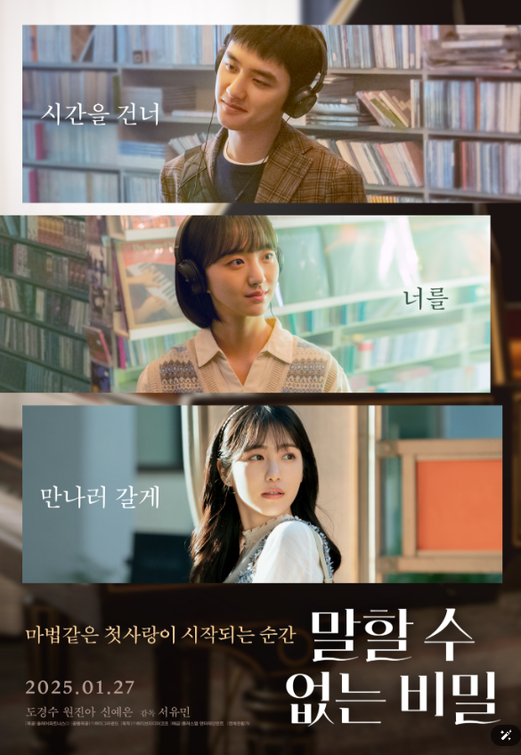 말할 수 없는 비밀 예매중 D-3 Secret: Untold Melody 예매율 8.6% 99% 감독 : 서유민 / 배우 : 도경수 , 원진아 , 신예은 장르 : 환타지, 로맨스, 멜로 / 기본 정보 : 전체관람가, 103분, 한국 개