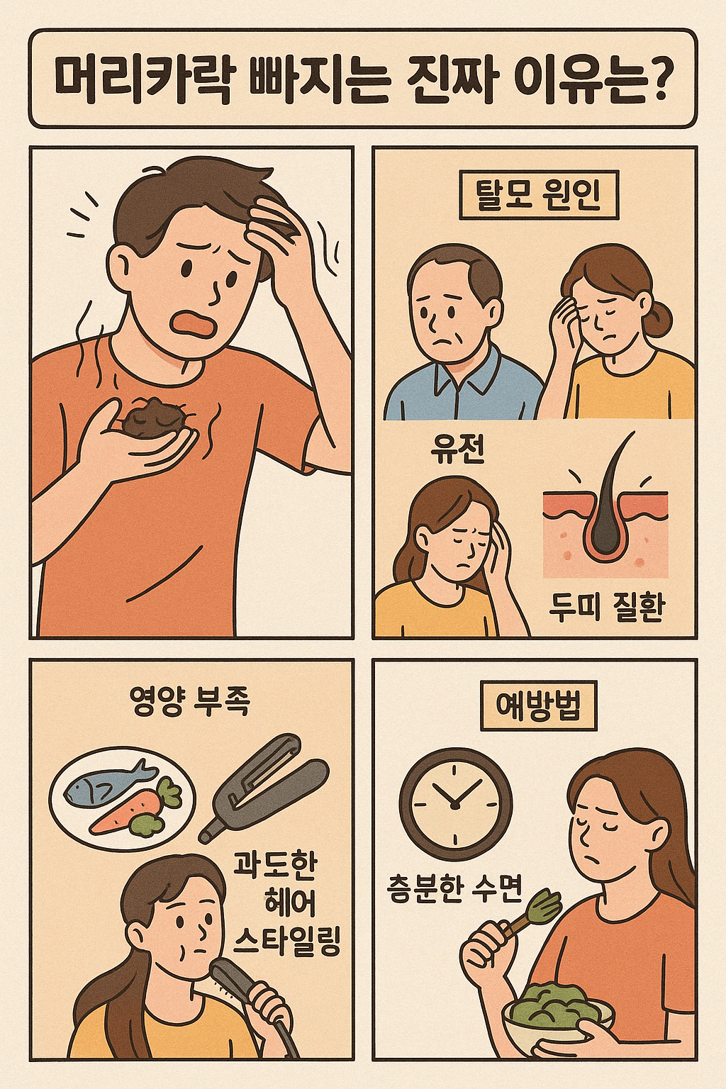 건강한 모발은 단순히 외모의 문제를 넘어서, 우리 몸의 전반적인 건강 상태를 반영합니다. 하지만 요즘처럼 탈모에 대한 고민이 남녀를 불문하고 확산되는 시대에는, 머리카락이 빠지는 이유를 정확히 이해하고 예방하는 것이 무엇보다 중요하죠. 이번 글에서는 머리카락이 빠지는 주요 원인부터 생활 속 예방법까지 풍성하게 정리해보았습니다.