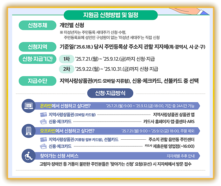 작성 기준: 행정안전부 공식 홈페이지, 정부 정책브리핑, 카드사 공지, 주요 언론 보도(2025 년 7 월 21 일 기준)