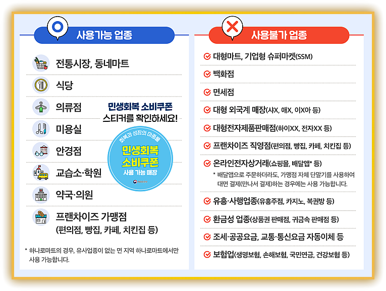 📌 민생회복 소비쿠폰 사용처, 어디까지 가능할까? — 한눈에 정리