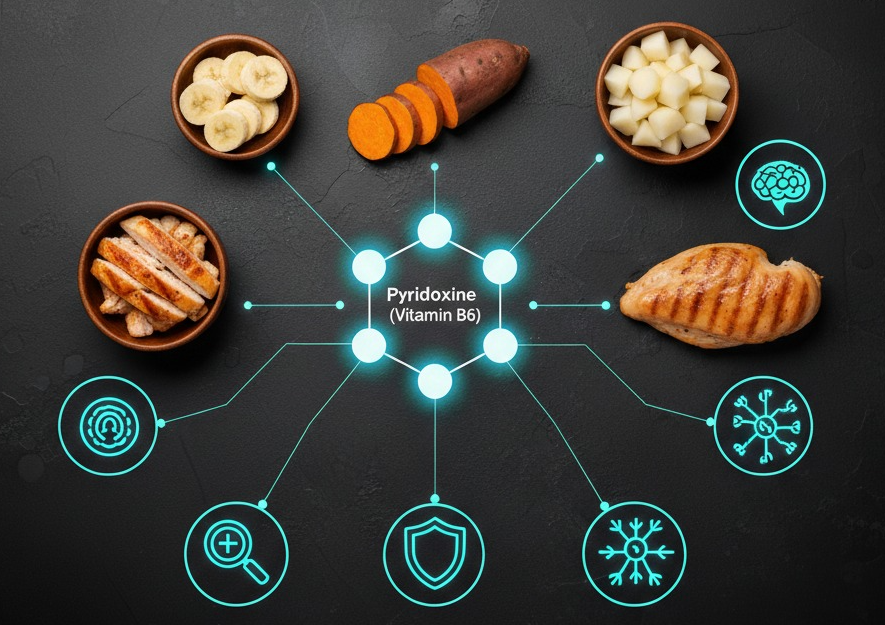 - 기능: 아미노산 대사, 신경전달물질 합성, 적혈구 형성, 면역 기능 지원.