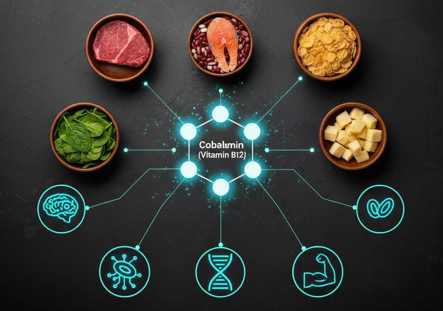 - 부족 시 증상: 악성 빈혈, 신경 손상, 피로, 인지 기능 저하.
