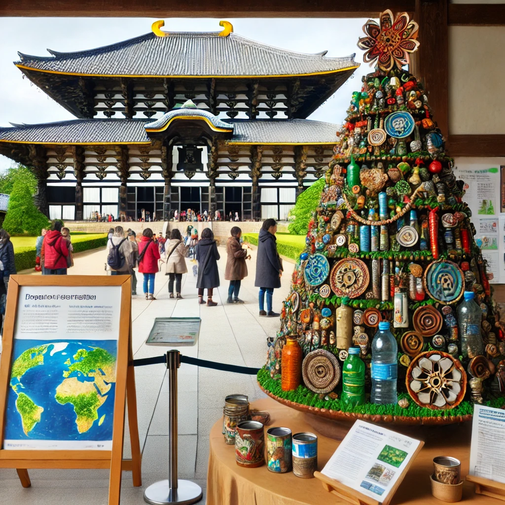 사찰에서는 친환경 크리스마스 트리를 설치하고, 이를 통해 환경 보호 메시지를 전달하며 지속 가능한 미래를 위한 나눔을 강조합니다.