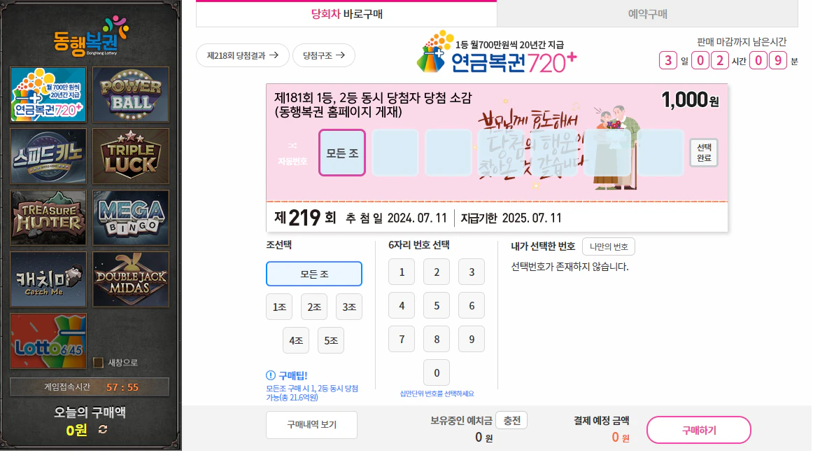 - 당첨 조건: 매주 목요일 추첨을 통해 1등 번호가 발표됩니다. 1등에 당첨되면 매월 일정 금액의 연금을 받을 수 있습니다.