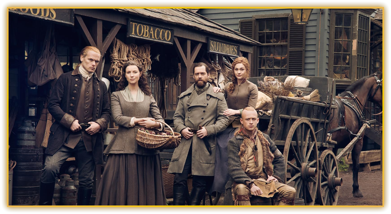 드라마 는 방대한 역사 로맨스 소설을 원작으로 한 시리즈로, 그 중심에는 간호사 클레어 랜달과 18세기 스코틀랜드의 전사 제이미 프레이저의 드라마틱한 사랑과 시간여행 모험이 자리하고 있