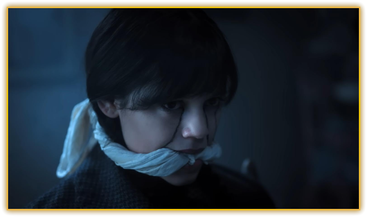 캠프장 모닥불도, 해변의 노을도 웬즈데이에겐 지루한 배경일 뿐이었다. 그녀는 두 눈을 번뜩이며 캔자스시티로 향했고, 그곳에서 ‘두피 절단마(Scalper)’라 불리는 전설적인 연쇄살인범의 흔적을 뒤쫓았다. 히드로 공항의 엄격한 액체 용량 규정을 비웃듯 — 칼, 철퇴, 심지어 살아 움직이는 친구 ‘씽(Thing)’까지 무사 통과시킨 채 — 선크림 한 통에 붙잡히는 엽기에 가까운 풍경은 이번 시즌의 블랙코미디 톤을 단번에 각인시킨다. 그리고 공개된 오프닝 6분, 우리는 빈티지 인형이 산처럼 쌓인 지하실에서 웬즈데이가 납치된 채 차분히 가슴을 졸이지 않는 모습을 본다. 그녀가 “이제 내가 인형놀이를 해볼까?”라고 중얼거리며 역습을 시작하는 순간, 코믹과 호러의 경계가 완벽히 무너진다.