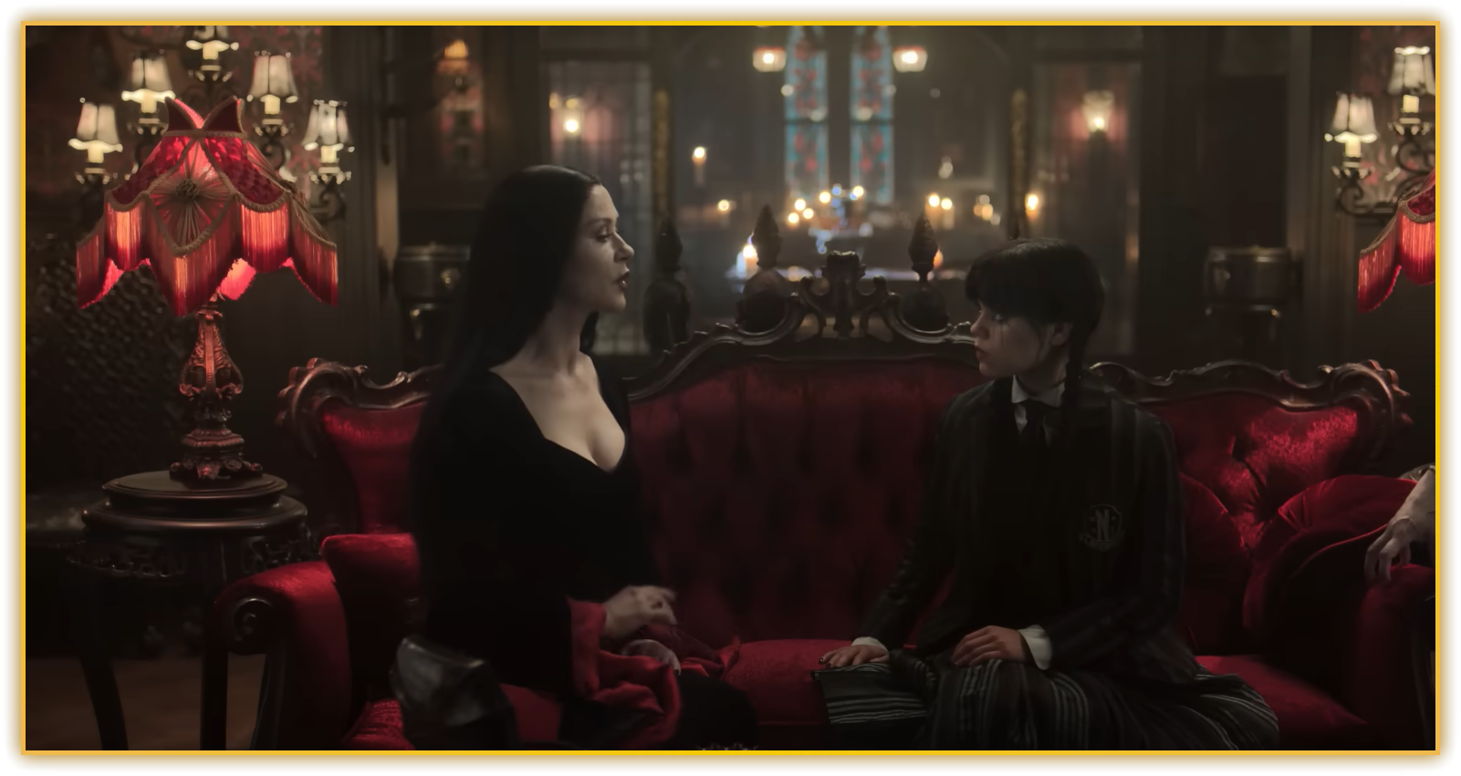 네버모어는 이제 아담스 가문의 두 남매를 동시에 품고 있다. 퍼그슬리가 입학하자 모티샤와 고메즈는 캠퍼스를 수시로 드나들며, 딸이 가장 싫어하는 순간에 가장 달콤한 미소로 등장한다. 여기에 모티샤의 어머니이자 웬즈데이에게는 뜻밖의 조력자인 그랜마마 프럼프까지 가세한다. 팀 버튼 감독은 “초현실적인 배경에도 피할 수 없는 혈육의 마찰이야말로 이 시리즈의 심장”이라고 단언한다. 결국 검은 눈물도, 예언된 죽음도, 가장 먼저 통과해야 할 문은 ‘가족’이라는 얘기다.
