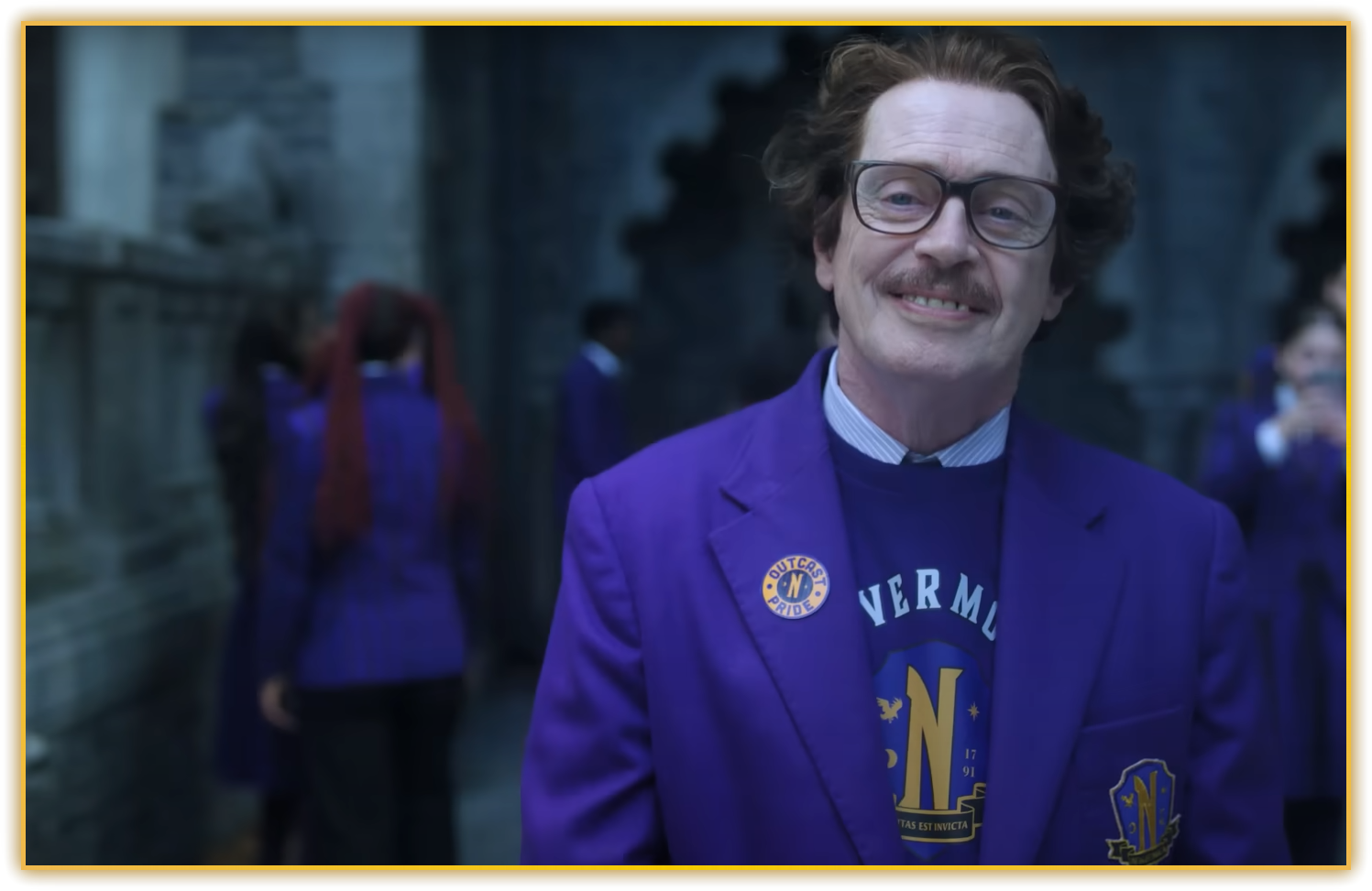 배리 도트 교장은 스티브 부세미 특유의 기괴하고 초조한 카리스마로 교단을 장악한다. 팬걸 애그니스 드밀은 웬즈데이를 연예인처럼 숭배하며 주변에 불편한 공기를 만들고, 캔자스시티 두피 절단마 ‘쳇’은 머리카락에 사로잡힌 미용사 출신 연쇄살인범이라는 기괴한 설정으로 첫 회를 흔든다. 그리고 그랜마마 프럼프의 짙은 회색 유머는, 모녀 전쟁의 판을 더욱 넓히기만 한다.