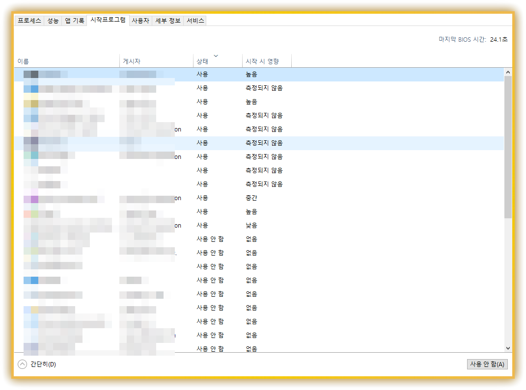 1. 시작 프로그램 비활성화로 부팅 속도 개선