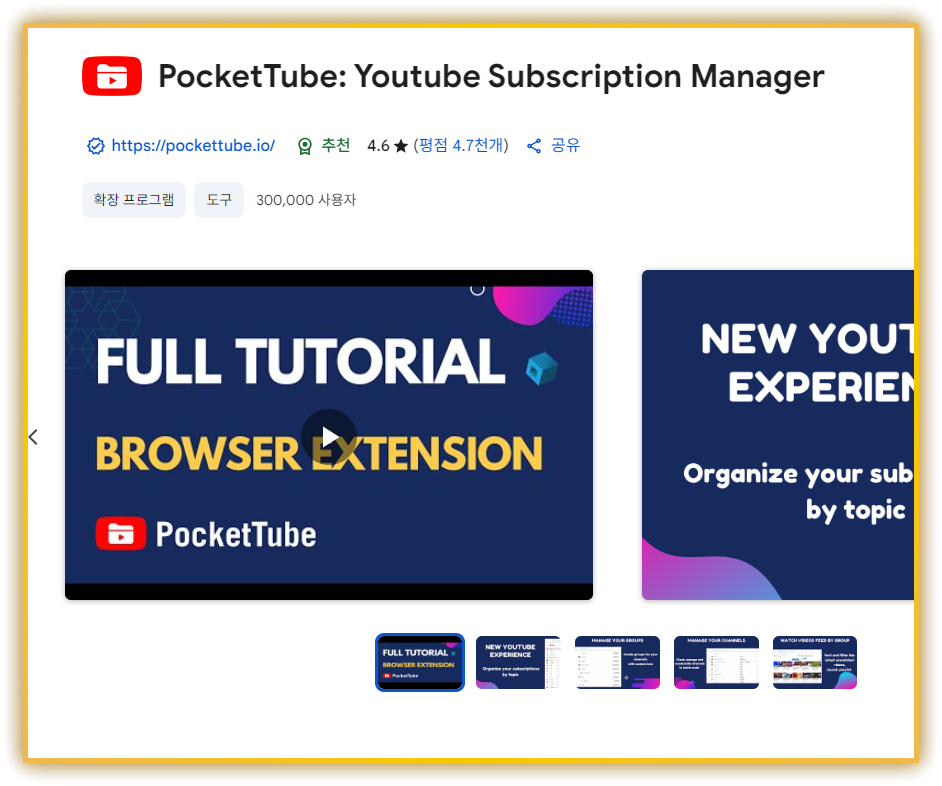 유튜브 구독 매니저 PocketTube 확장팩 설치및 사용가이드