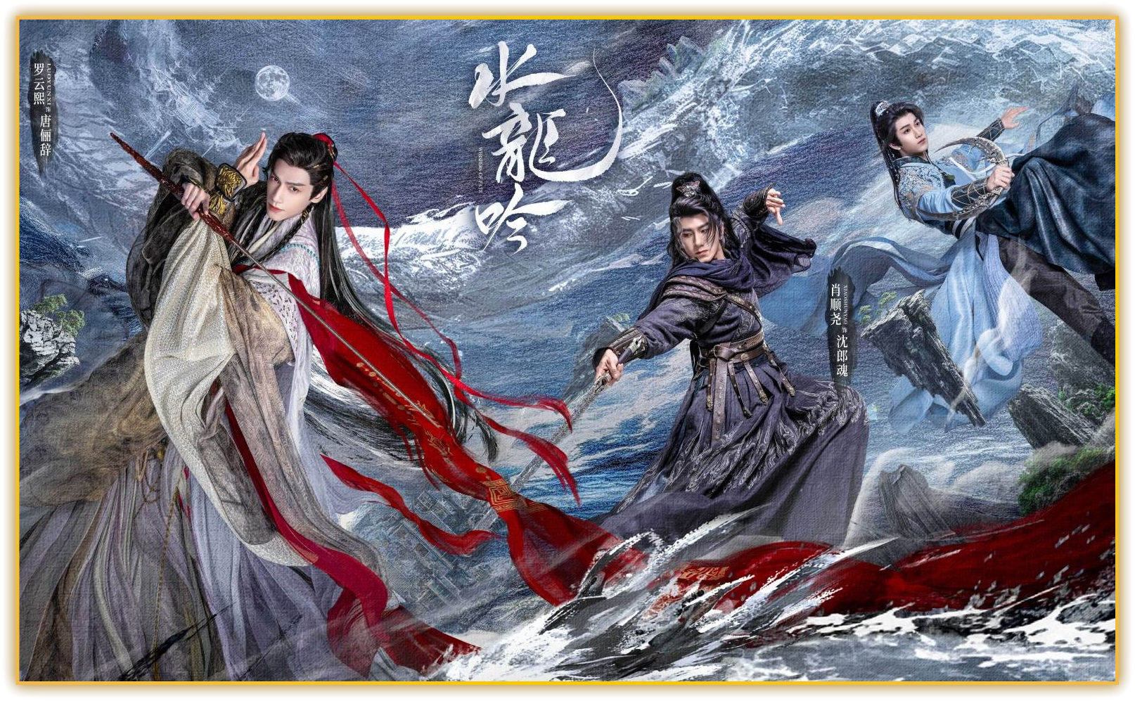‘수룡음(水龙吟)’은 문자 그대로는 ‘물의 용이 우는 소리’를 뜻하지만, 작품 안에서는 생과 사·의와 악의 경계를 넘나드는 자의 울림을 상징한다. 물은 세상을 감싸지만 끊임없이 형태를 바꾸며 흐르고, 용은 하늘로 오르는 존재다. 즉, ‘수룡’은 흐름 속에서도 굴하지 않고 끝내 하늘을 향해 오르는 강자의 의지를 담고 있으며, ‘음(吟)’은 그 의지를 세상에 노래로 퍼뜨린다는 뜻을 지닌다. 극 중 주인공 당려사(唐俪辞)가 검이 아닌 ‘음률’로 세상의 혼탁함을 가르는 것도 이 이름의 상징과 닿아 있다. 그의 비파 소리는 단순한 무공이 아니라, 세상과 자신에게 던지는 질문이자 신념의 노래다.