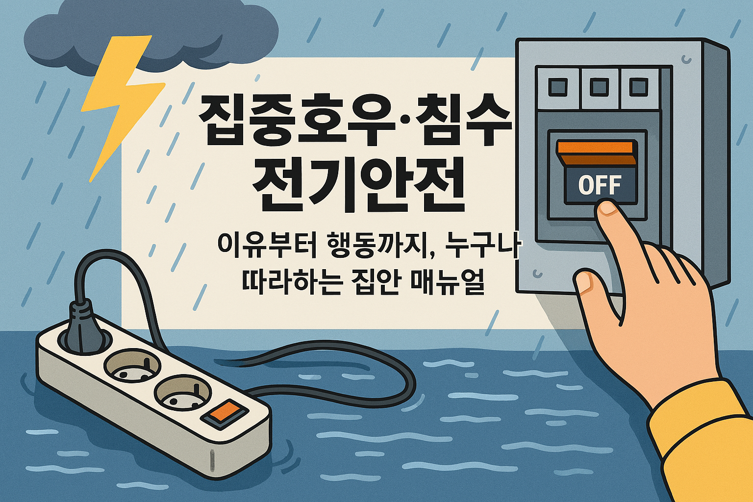 비가 많이 오면 “뭘 먼저 해야 하지?”에서 막히기 쉽습니다. 이 글은 왜 그렇게 해야 하는지를 먼저 이해시키고, 그다음에 어떻게 하는지를 차근차근 안내하는 ‘이해→행동’ 순서의 매뉴얼입니다. 전기 지식이 없어도 읽히도록 쉽게 풀었습니다.