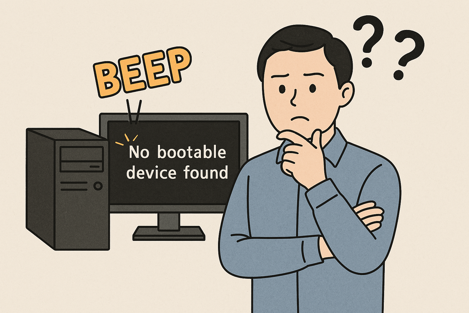 "잘 쓰던 컴퓨터가 어느 날 갑자기 켜지지 않아요. 전원은 들어오는데 화면이 안 떠요. 그리고 전원 버튼 누르자마자 ‘삑’ 소리만 나고 아무 반응이 없어요…"