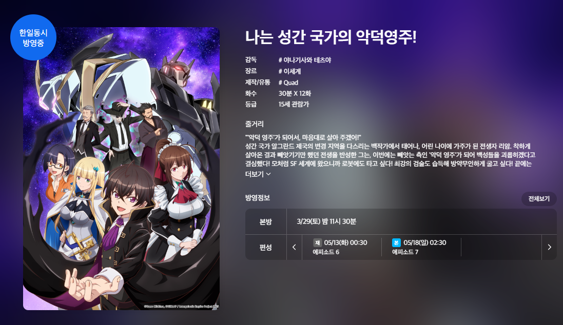 '나는 성간 국가의 악덕 영주!'는 국내 주요 플랫폼에서 스트리밍 시청이 가능합니다. 아래 링크를 통해 다시보기를 즐겨보세요: