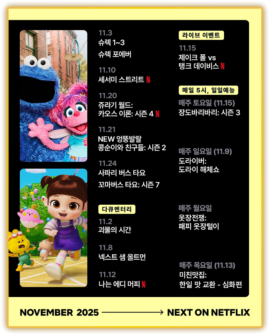 2025년 11월 넷플릭스는 그 어느 때보다 풍성하다.