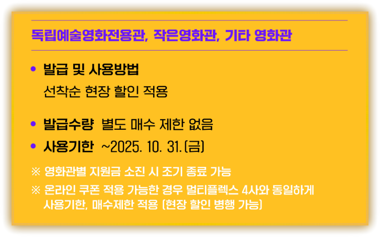 - 작은 영화관/예술영화관/기타 중소 영화관: ~ 2025년 10월 31일(금)