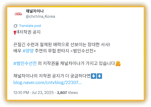 채널차이나가 방송할 예정인가봅니다.