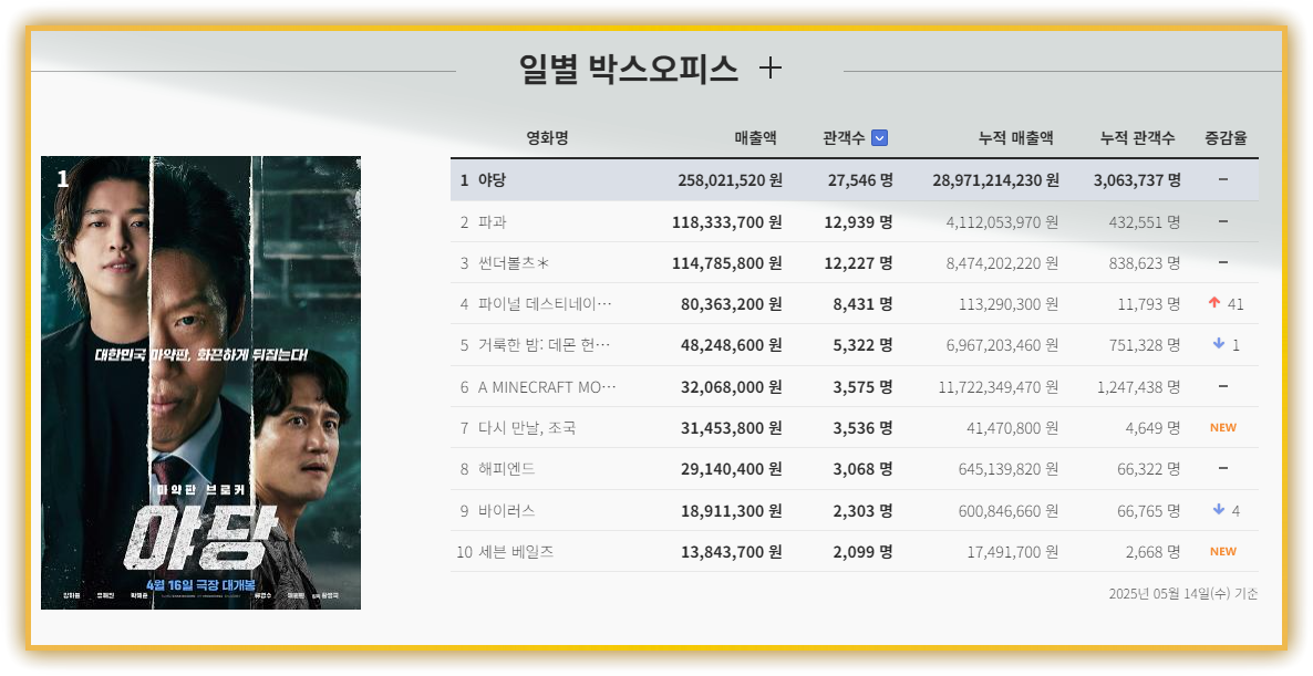 💸 일일 박스오피스 TOP 10 (2025.05.14 기준)