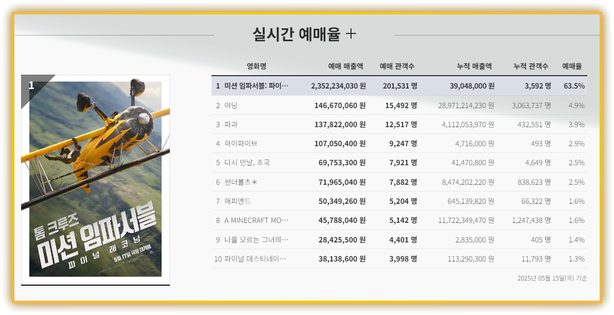 🎟️ 실시간 예매율 TOP 10 (2025.05.15 기준)