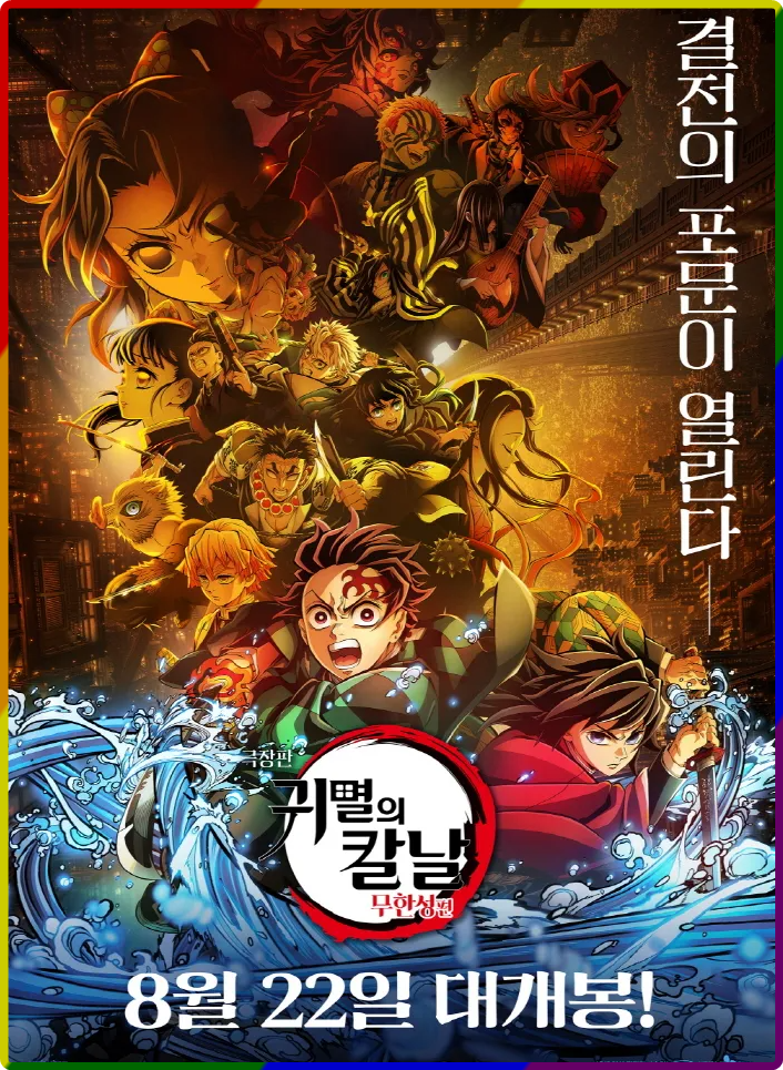 귀살대와 혈귀의 최종 결전이 벌어지는 ‘무한성’ 편을 다룬 극장판이다. 탄지로와 동료들은 무잔의 함정으로 본거지 무한성에 끌려 들어가며, 상현 혈귀들과 치열한 전투를 벌인다. 원작 만화 후반부를 영화화한 만큼 긴장감과 스케일이 압도적이다. 화려한 작화와 몰입감 있는 액션, 인물들의 성장 서사가 조화를 이루며, 개봉 첫 주 압도적 흥행으로 애니메이션 영화의 위력을 다시 입증했다.