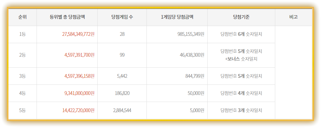 당첨금은 평균 대비 낮은 9억대 중반 수준으로 안정적입니다.