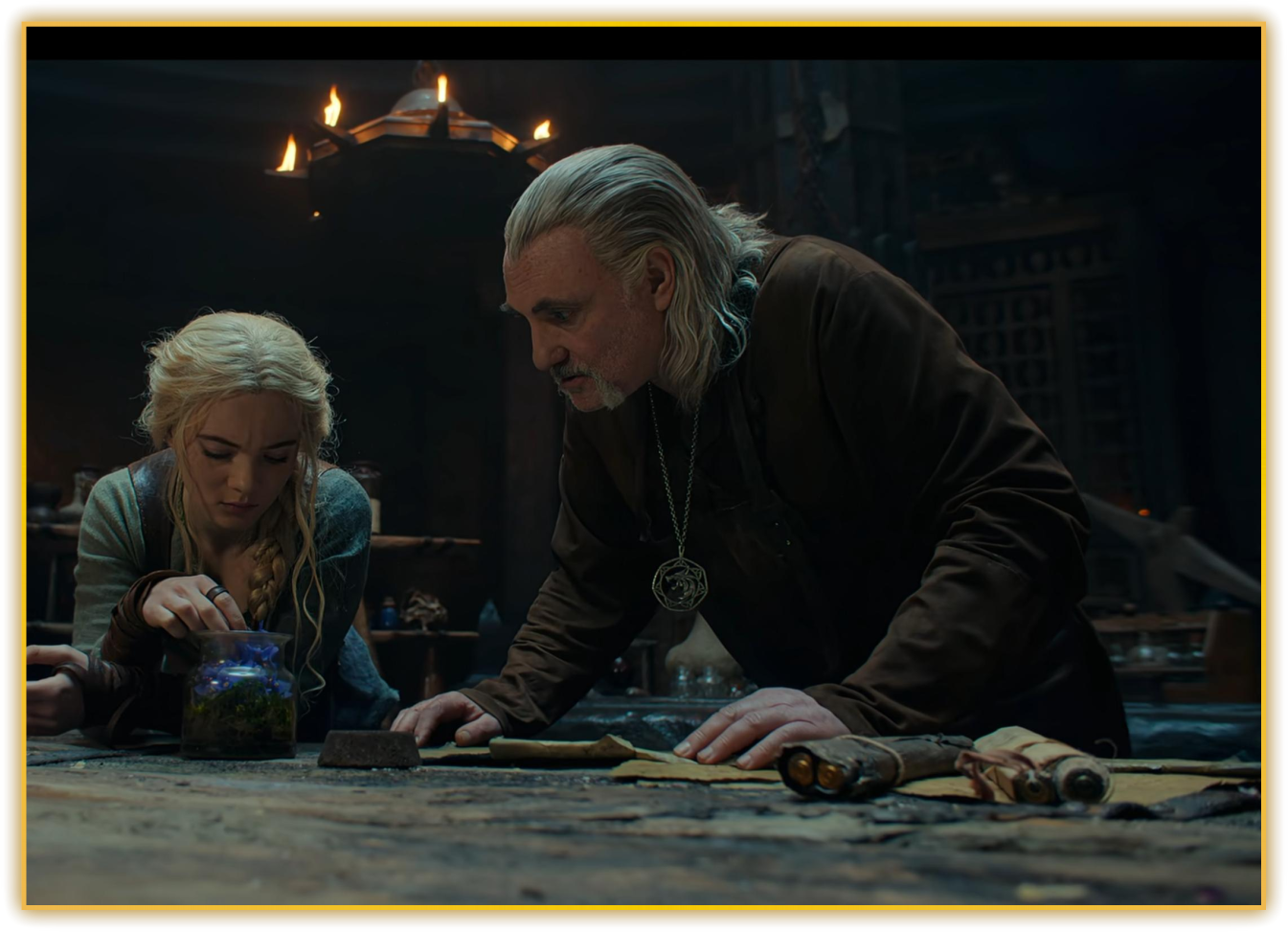 시즌 2의 가장 중요한 관전 포인트는 리비아의 게롤트와 시릴라 공주가 만들어가는 가족애입니다. 냉정했던 게롤트가 시리에게만큼은 따뜻한 면모를 보이며 헌신적으로 보호하고 훈련시키는 모습은 시청자들에게 큰 감동을 선사합니다. 이 둘의 관계는 드라마의 핵심 감정선이며, 시리가 게롤트의 손에 이끌려 점차 위쳐의 길을 걷게 되는 과정은 흥미진진한 드라마를 만들어냅니다.