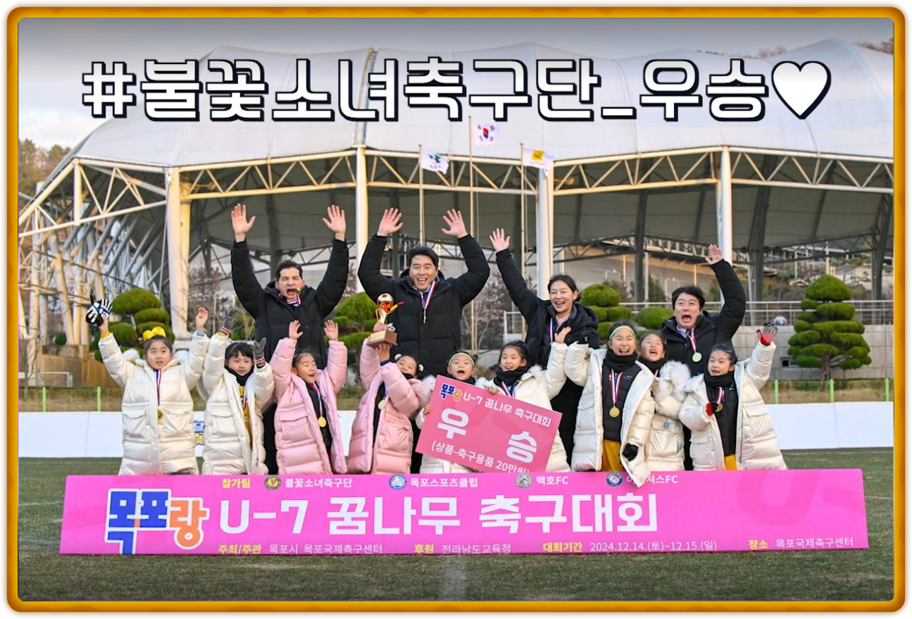 차가운 바람이 불던 경기장, 하지만 목포 U7 팀은 그 어느 때보다 뜨거운 열정으로 대화 미션 우승을 거머쥐었습니다. 🏆 마지막 경기인 만큼 부담도 컸지만, 팀원들은 서로를 믿고 끝까지 함께 달렸고, 값진 우승이라는 결실을 맺었습니다.