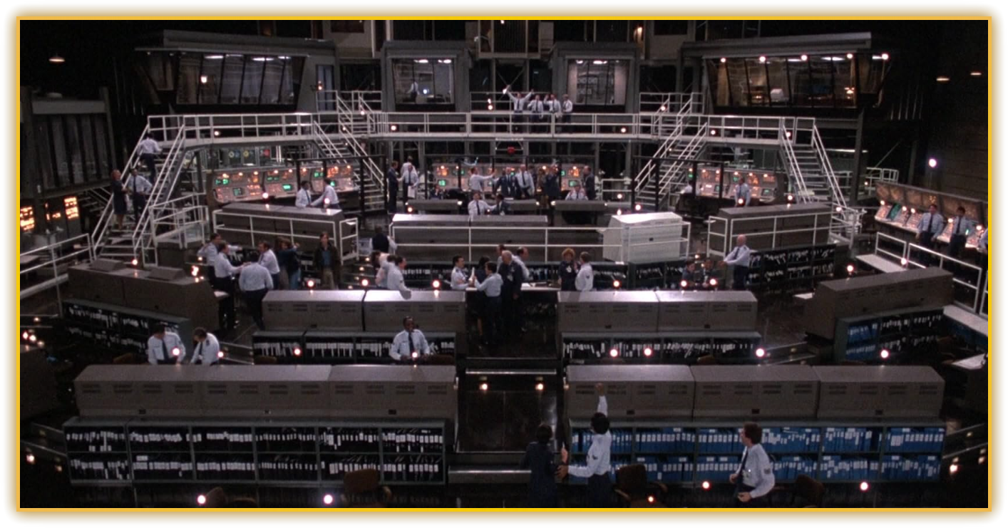 - 실제 NORAD는 촬영 허가를 거절. 제작진은 MGM 스튜디오에 1백만 달러 규모 풀세트(폭 38m × 높이 12m)를 짓고 210개 모니터를 실시간 구동했다. 당시 ‘영화 역사상 가장 비싼 세트’.