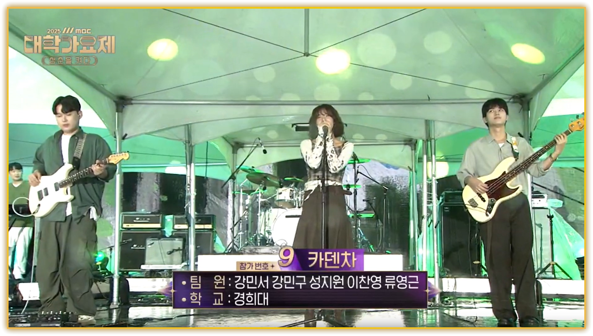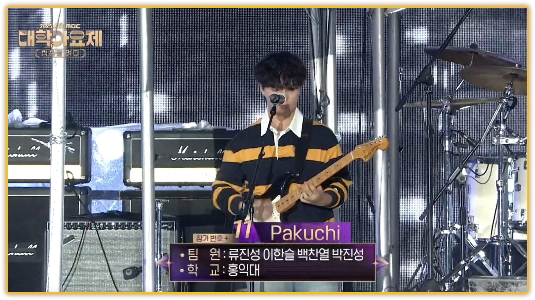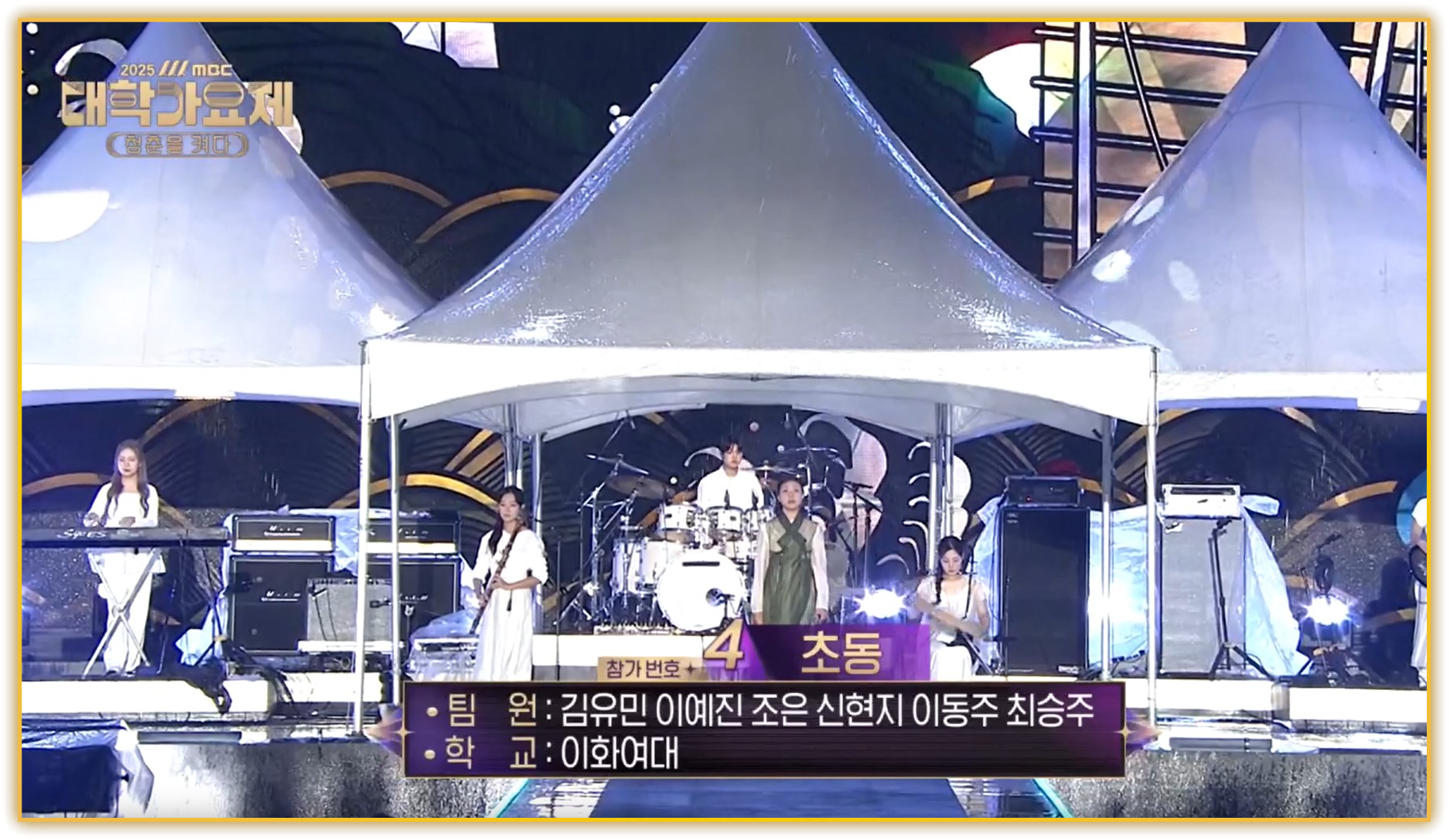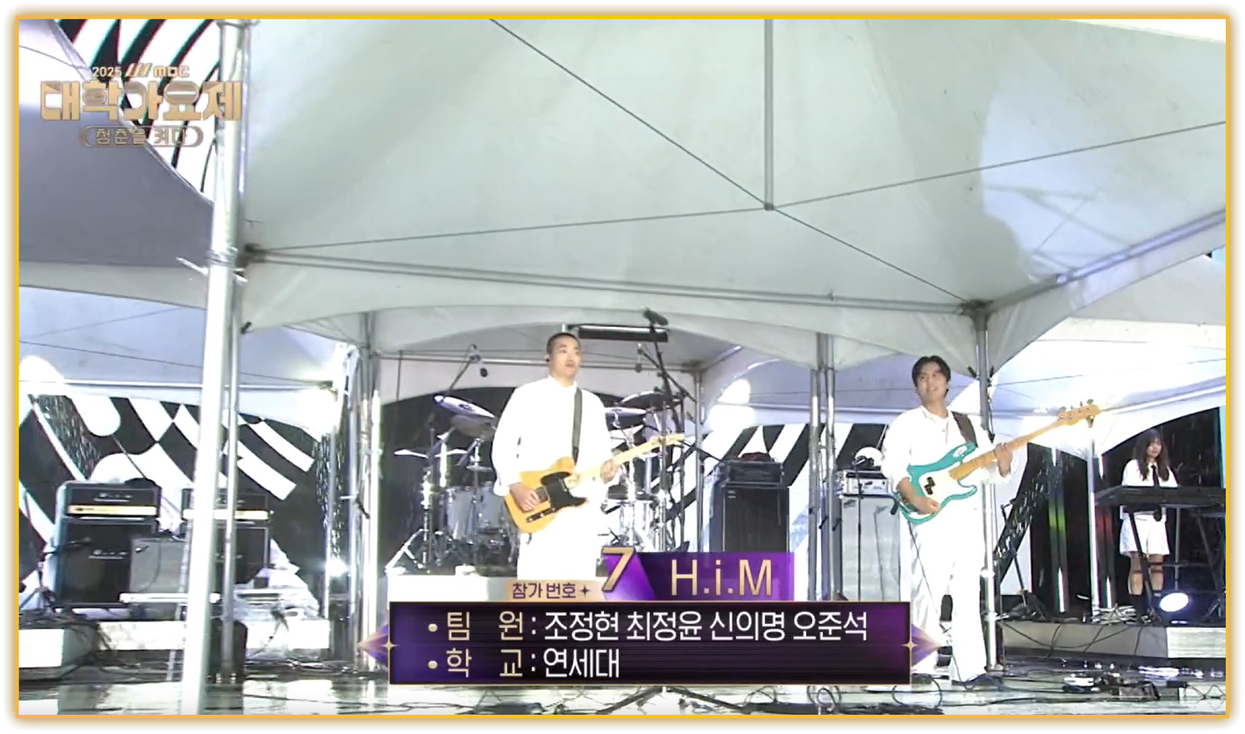 - 특징 : 밴드 또는 팀 기반 구성으로 대학가요제 무대에 적합한 ‘창작곡 + 팀 퍼포먼스’ 스타일을 보여줌.