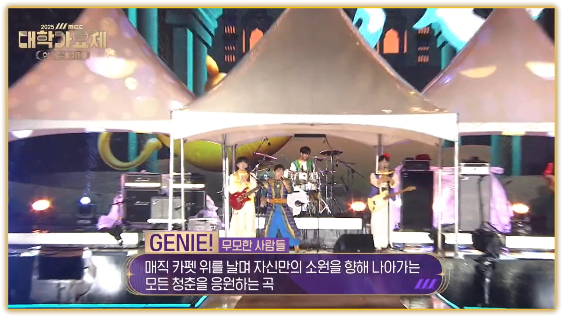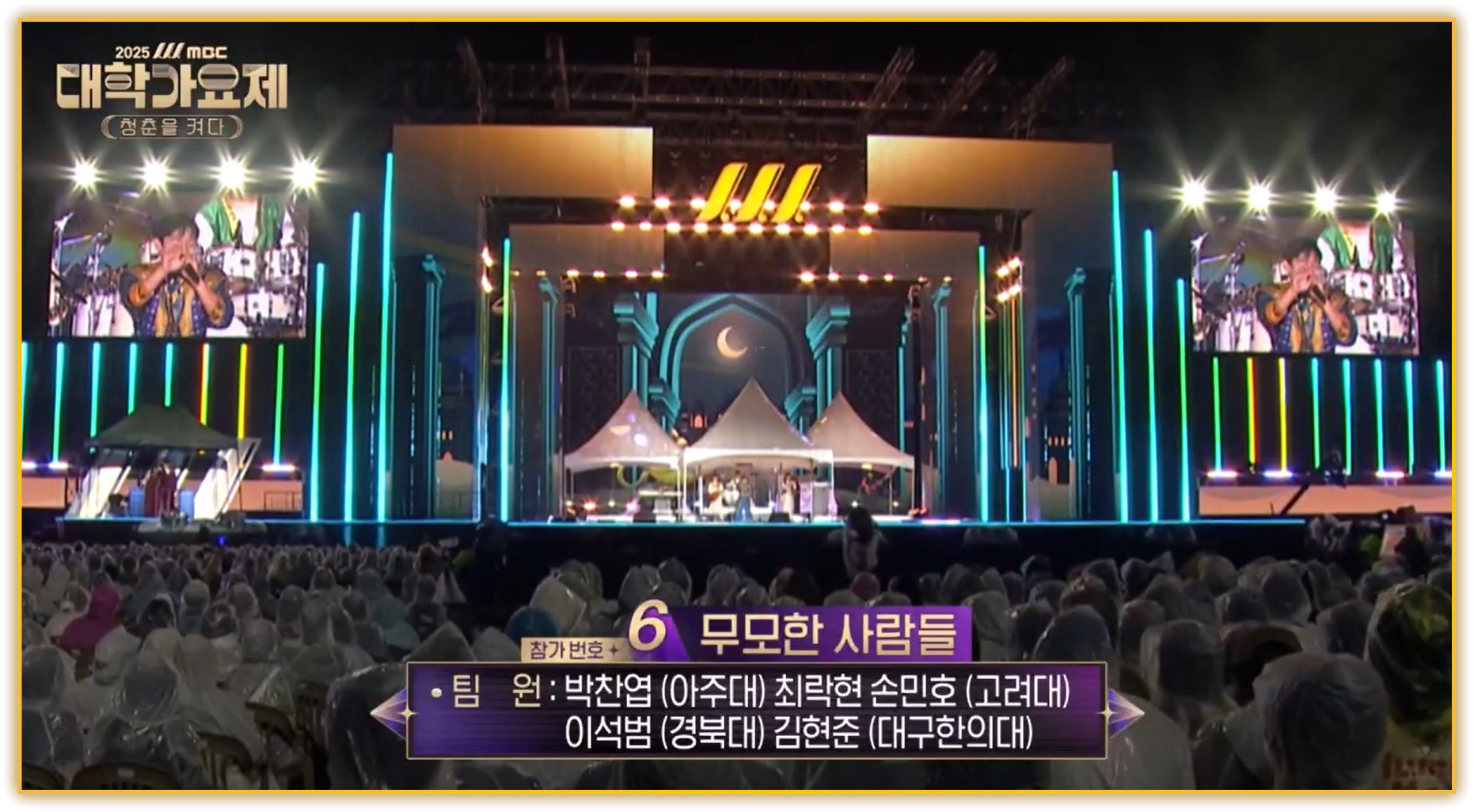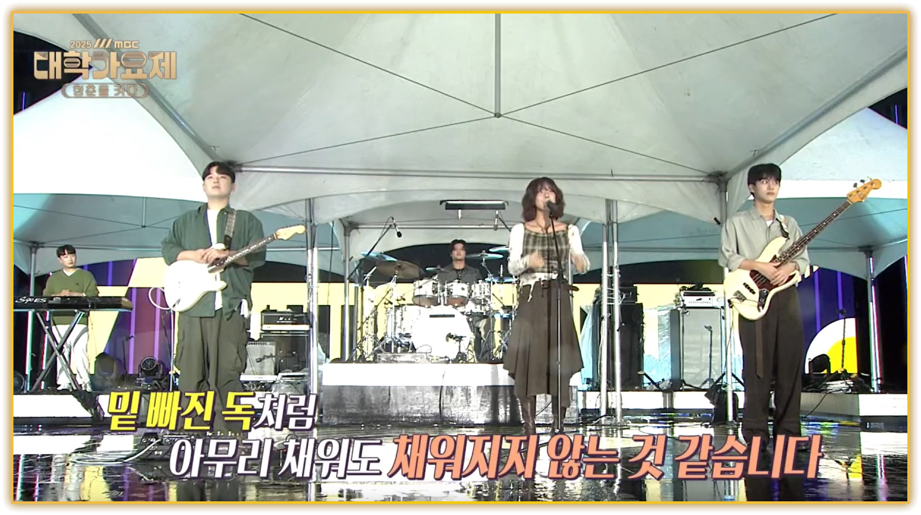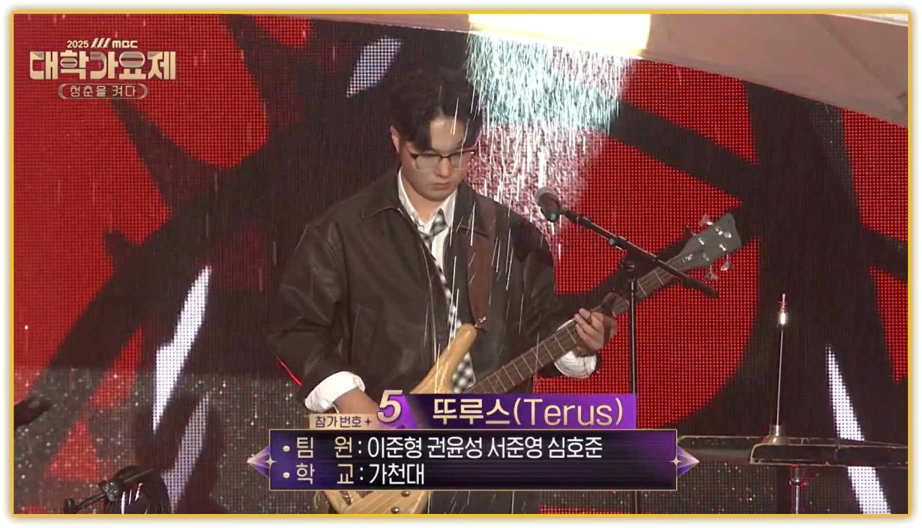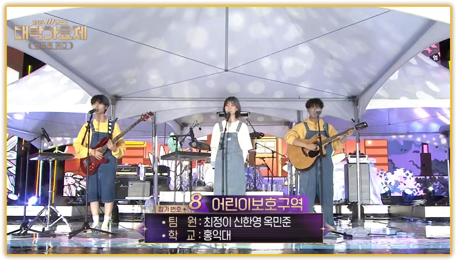 - 특징 : 밴드 또는 팀 기반 구성으로 대학가요제 무대에 적합한 ‘창작곡 + 팀 퍼포먼스’ 스타일을 보여줌.