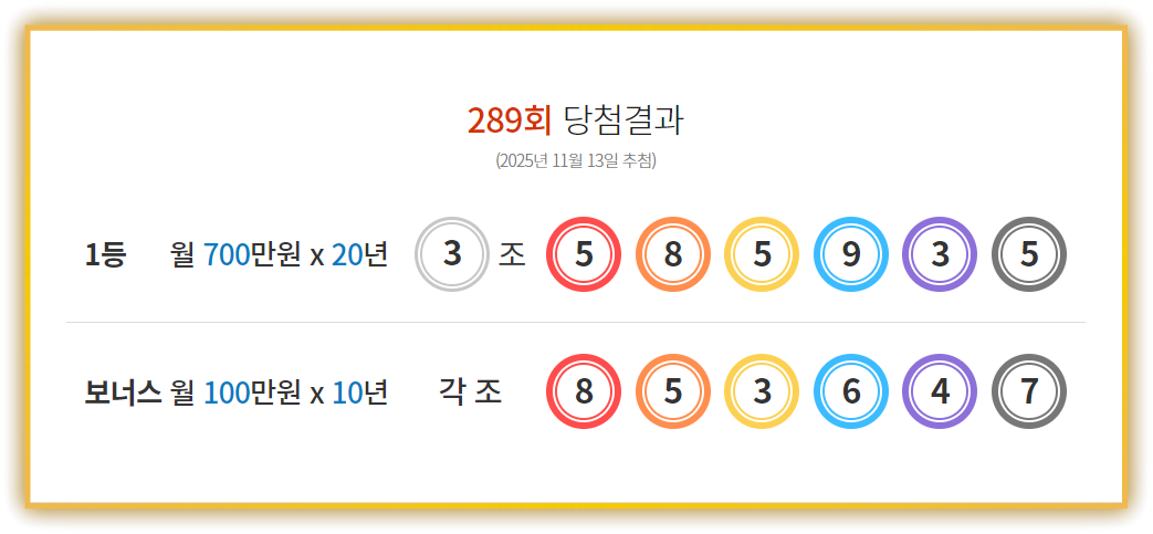 당첨번호 요약 (2025년 11월 13일 추첨)