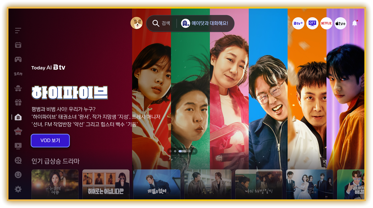 – B tv 홈에서 다시 음성검색 버튼을 누르고 말해 봅니다(리모컨 마이크 정상 확인).