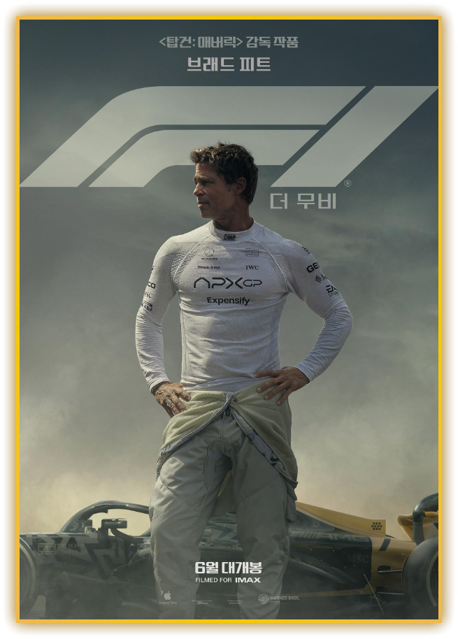 이 영화는 단순한 이야기를 가진 영화지만, 그것을 어떻게 담아내는지가 영화의 가치를 결정한다는 것을 증명한 작품이다. 귀가 즐겁고, 눈이 즐겁고, 심장이 즐거운 영화. F1이라는 세계가 주는 속도와 현장감을 보고 싶다면 반드시 IMAX로 관람할 것을 추천한다.