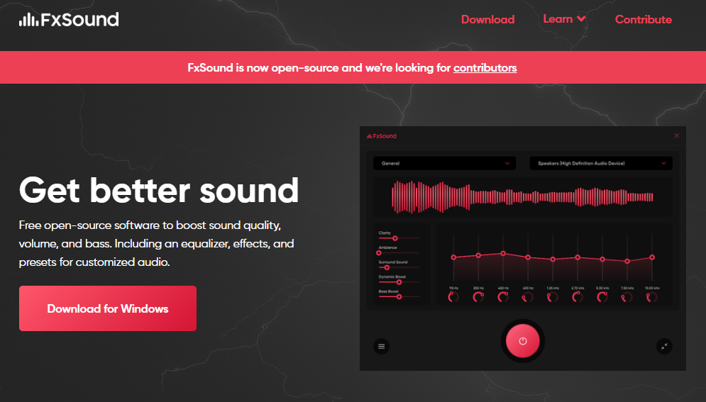 - 2023년 11월 28일부터 FxSound는 오픈 소스로 전환되어 누구나 GitHub을 통해 소스 코드에 기여할 수 있습니다.