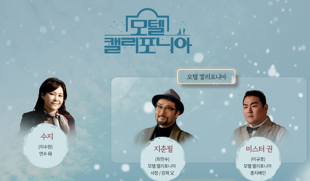 '모텔 캘리포니아'의 주인이자 낭만적인 모텔 사장. 강희의 아버지로, 잘생긴 외모와 부드러운 목소리, 우아한 행동으로 사람들의 마음을 사로잡는 마성을 지녔다.
