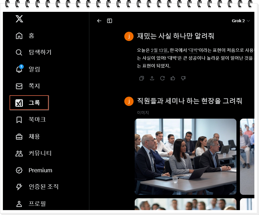 기존 AI들은 웹 검색 결과를 기반으로 정보를 제공하는 반면, 그록은 X(구 트위터)의 데이터를 적극 활용합니다. 따라서 실시간 뉴스, 트렌드, 핫이슈를 빠르게 확인할 수 있다는 강점이 있습니다.