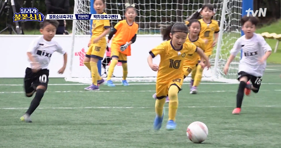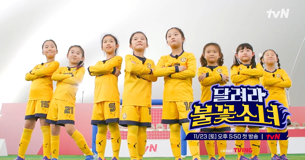 tvN 예능 '달려라 불꽃소녀'는 대한민국 최초의 U-7 여자 축구단 불꽃소녀 FC의 성장기를 담은 프로그램입니다. 평균 나이 6.6세, 축구 경력 30일의 어린 소녀들이 축구를 통해 좌절과 도전을 경험하
